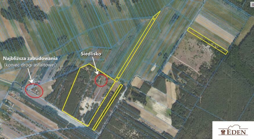 Dojazd drogą polną, wzdłuż której przebiega linia energetyczna widoczna na zdjęciach. Od ulicy asfaltowej ok. 200 m do granicy pierwszej działki i ok. 550 m do siedliska.